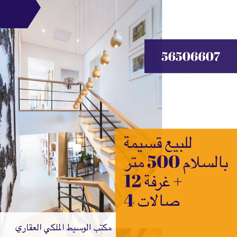 مساحته ٥٠٠ متر مجموع الغرف ١٢ غرفة مع غرف الخدم ٤ صالات معيشه و وحده استقبال مطبخ تحضيري كبير و مطبخين للطبخ