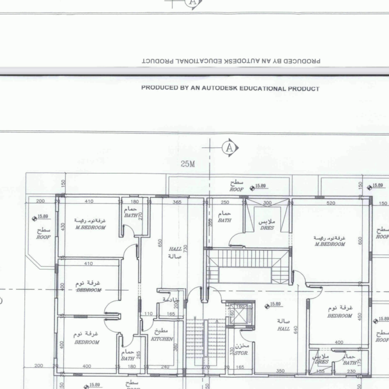 كل دور شقتين كل شقه غرفتين حمامين وغرفة خادمه بحمامها